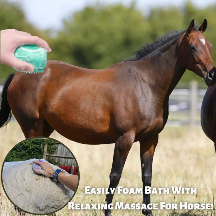Horses love relaxing massages and baths! Our NEW HorseBath foaming massage brush is a perfect 2-in-1 massage and bathing device for your horse.