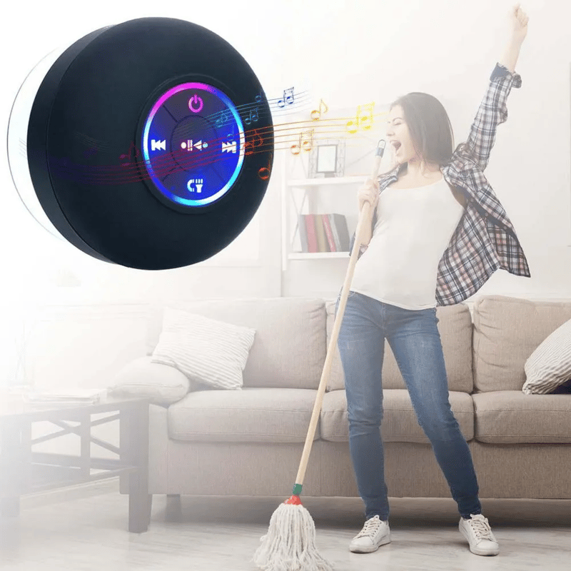 This wireless speaker boasts multiple colors and you can lock one color or let it scroll away. Beat-driven light shows create the perfect ambiance for your shower and music time. The multi-color LED lights will sync to the beat of the music to make your life more interesting.