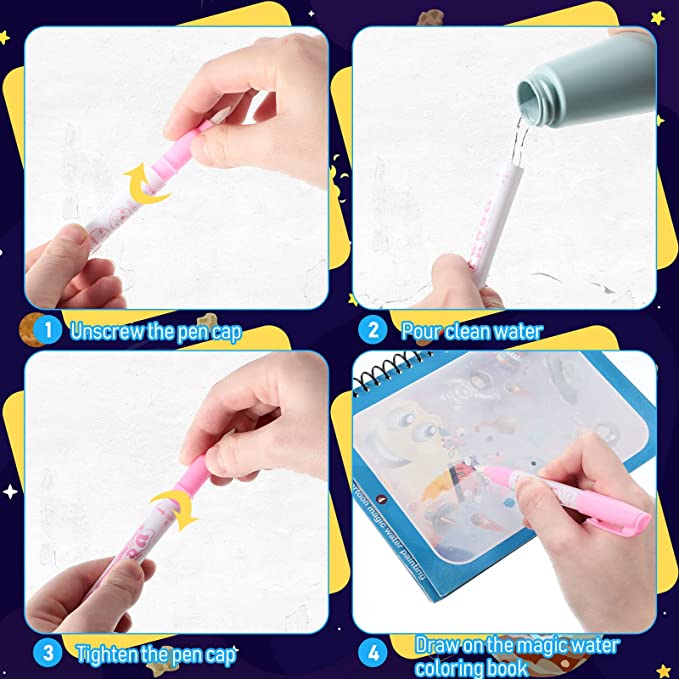 Package Includes:4 Magic Water Book + 4 Magic Water Pen