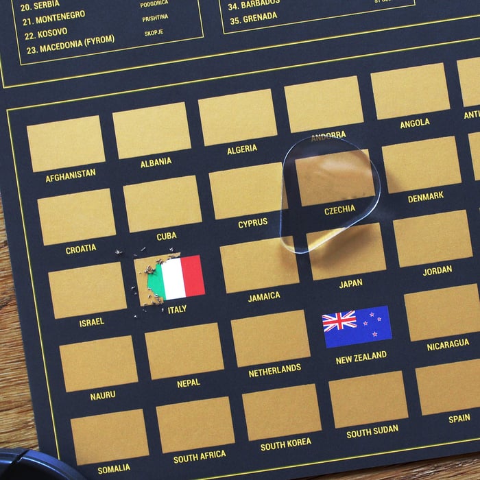 PREMIUM GOLD LOOK AND FEEL: Real gold-coloured scratch-off ink, not brown. The surface has a special finish for optimal scratching. The scratch-off poster feels better and prevents scratches.